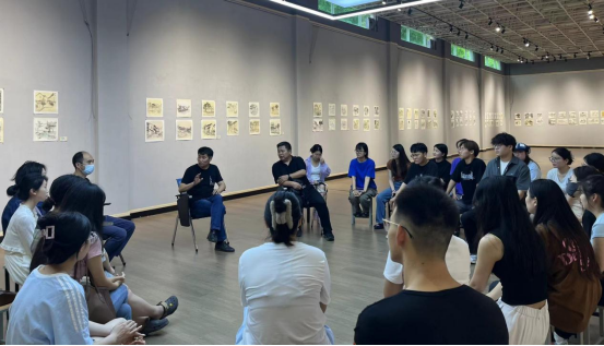 会上,张伟老师致辞,他强调了在学习过程中发现与创造美的重要性,鼓励学生们无论身处何地都要保持对美的敏锐洞察,并在日常学习中融入对经典画作与画论的学习,通过交流与写生不断提升自我。紧接着,张江波老师从两个维度分享了对写生的见解。他指出,在技术层面,应将所见转化为画面,静下心来研究并掌握一些技法和创作路径;在情感表达方面,则需用心感受周遭环境,确保作品能够真诚传达个人情感与地方特色。随后,邹东升老师以王怀庆老师的作品为例,深刻阐述了画面上意象节奏变化的美学价值,强调写生作为主动创作的过程,应注重从自然中提炼美感,通过形式与构图的巧妙安排,使作品呈现出独特的艺术魅力。