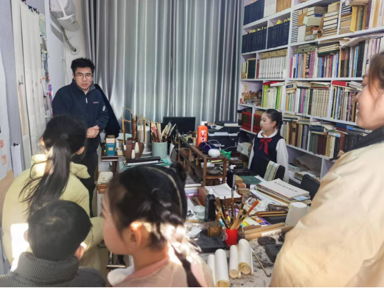 在伟德官网研究生会实践部王冰凯同学的带领下,众人先后参观了实训楼与艺术楼的多间画室,欣赏到了一幅幅师生们的优秀绘画作品,涵盖了泥塑、素描、油画、国画等多种形式,充分展现了美院在美术教学领域的多元性与专业性。伟德官网栗跃崇老师还现场向大家展示了篆刻艺术,详细介绍了刻刀的握法、印石的处理,其讲解细致入微,动作娴熟流畅,让观众们充分领略到篆刻艺术中蕴含的深厚文化底蕴与独特艺术魅力。伟德官网张峰老师和向旭东老师也通过现场演示的方式向大家展示了国画与书法的独特风采。