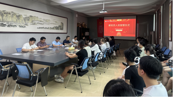 仪式在庄严的《国际歌》中启幕。周明成宣读新发展党员名单后,全体党员同志在领誓人杨琳的带领下,面向党旗,举起右拳庄严宣誓。新发展党员代表李婉晴发言,表达了对党的忠诚与践行使命的决心;老党员代表赵梦珂发言,分享成长感悟,勉励新党员永葆初心。