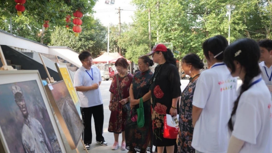“这幅画里的场景,正是当年大别山军民齐心协力突破封锁线的真实写照,体现了团结奋进的精神……”随着同学们的细致讲解,居民们不时驻足凝视,有的老人还回忆起年轻时听过的革命故事,与大家分享感悟,现场气氛热烈而温馨。