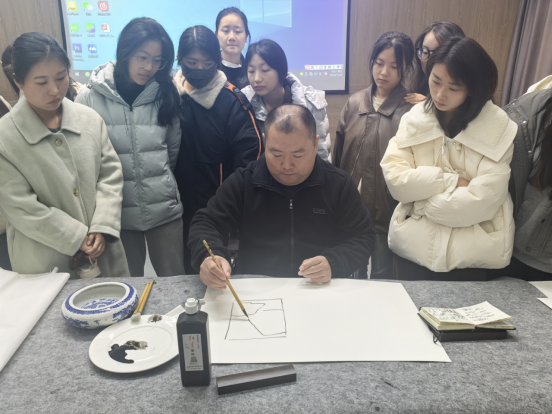 讲座接近尾声时,锁武通老师更是在现场进行了生动的教学示范,一边亲手绘制山水画作,一边细致讲解每一笔背后所蕴含的艺术构思和技术要领。他强调了如何运用笔墨的浓淡干湿变化来捕捉自然界的光影效果,同时分享了将现代生活元素巧妙融入传统山水意境中的独特视角。整个过程不仅让在场师生们领略到了山水画的魅力所在,也为他们提供了宝贵的实践经验和灵感来源。