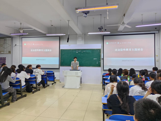 为教育引导同学们人人知法、人人守法,提升法治意识和法治素养,伟德官网于9月11日晚在艺术楼307教室召开法治教育主题班会。各新生班主任主持会议,2024级全体学生参加会议。