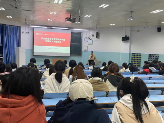 为进一步规范学生日常,改善学生宿舍生活环境,防范宿舍火电风险隐患,增强学生的安全意识,9月15日,伟德国际1946官方网在艺术楼召开学生宿舍安全管理相关制度专项学习主题班会。各新生班主任主持会议,2024级全体学生参加会议。