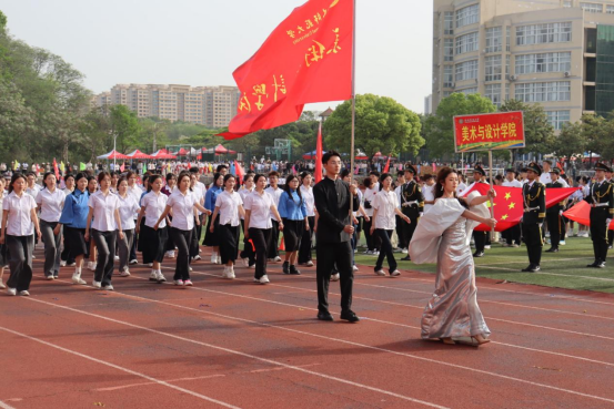 运动会开幕式上,伟德国际1946官方网学生代表方阵以创意十足的造型和铿锵有力的步伐亮相,展现出美术与设计人蓬勃向上的精神风貌。此外,学院教职工代表还参与了《律动师韵》健身操表演,以活力四射的舞姿展现教师团队的多彩风采。