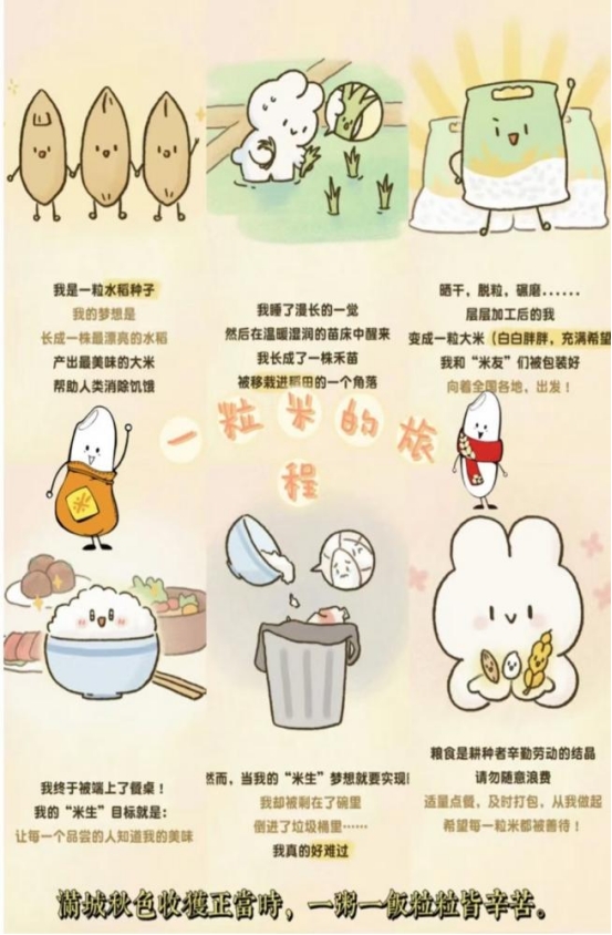 活动期间,校园内创意涌动,同学们积极响应,纷纷以画笔为媒,将对粮食的珍视与节约意识融入海报设计之中。参赛作品紧密围绕大赛主题,学生们充分发挥想象力与创造力,创作出一系列生动、富有感染力的海报。这些作品有的通过描绘金黄麦田与农民辛勤耕作的场景,表达对粮食的敬意与感激之情;有的则运用鲜明的色彩对比和简洁有力的线条,呼吁减少粮食浪费,共同守护地球家园。