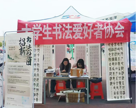 作为传承中华传统文化的中坚力量,大学生书法爱好者协会一直致力于为热爱书法的同学们搭建一个学习、交流和展示的平台。在此次“百团大战”活动中,大学生书法爱好者协会通过精心布置的展位和丰富多彩的互动环节,成功吸引了大量新生的目光和加入。活动现场,新生们在社团成员的悉心指导下,纷纷拿起毛笔,亲身体验书法的独特魅力,感受中华传统文化的博大精深。同时,社团还展示了精美的书法作品集,让新生们在欣赏中领略到书法的艺术之美。