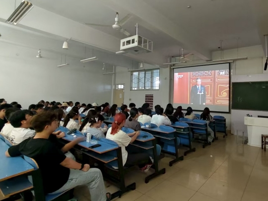 9月3日上午9时,北京天安门广场举行纪念中国人民抗日战争暨世界反法西斯战争胜利80周年大会。伟德官网组织师生党员、入党积极分子于实训楼二楼艺言堂集中观看九三阅兵,其他同学在教室同步线上观礼。